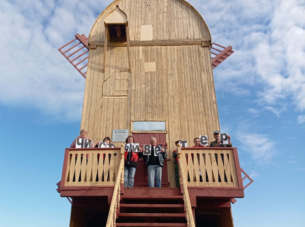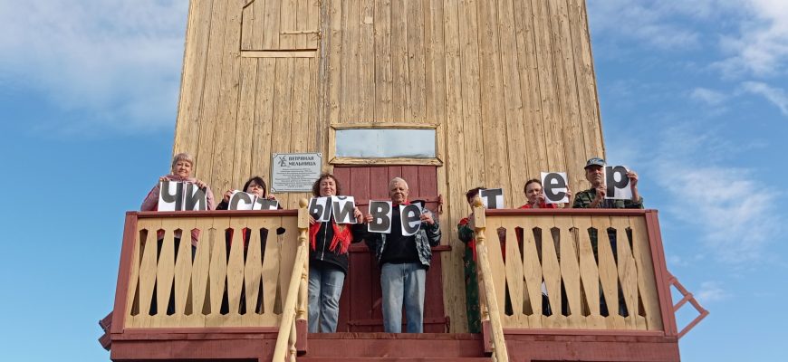 У подножия мельницы, напоминающей иллюстрацию к старинной сказке, библиотекарь отдела стационарного обслуживания №9 рассказала участникам акции об истории этого сооружения, ставшего немым свидетелем ушедшей сельской эпохи. По словам организаторов, мельница — не просто архитектурный памятник, а живое напоминание о прошлом, которое требует заботы и внимания.