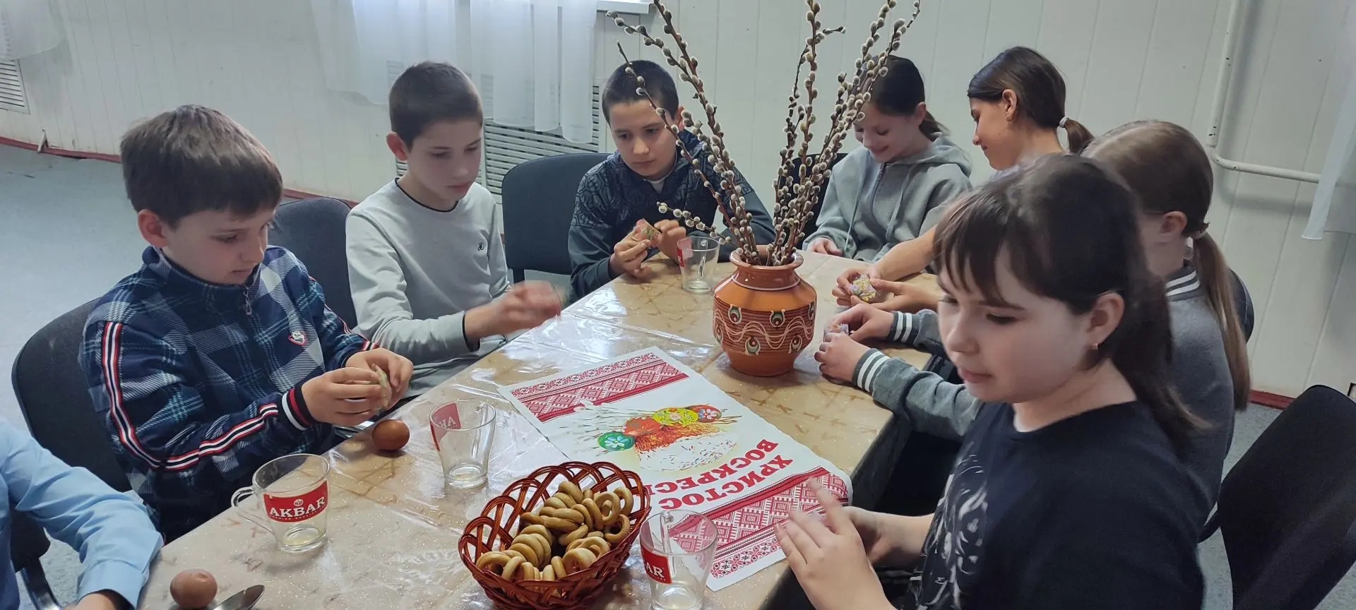 В начале мероприятия юные гости не просто взяли в руки заготовки, а совершили небольшое путешествие в историю. Детям увлекательно рассказали о возникновении православной Пасхи и её богатых традициях, которые бережно передаются из поколения в поколение.