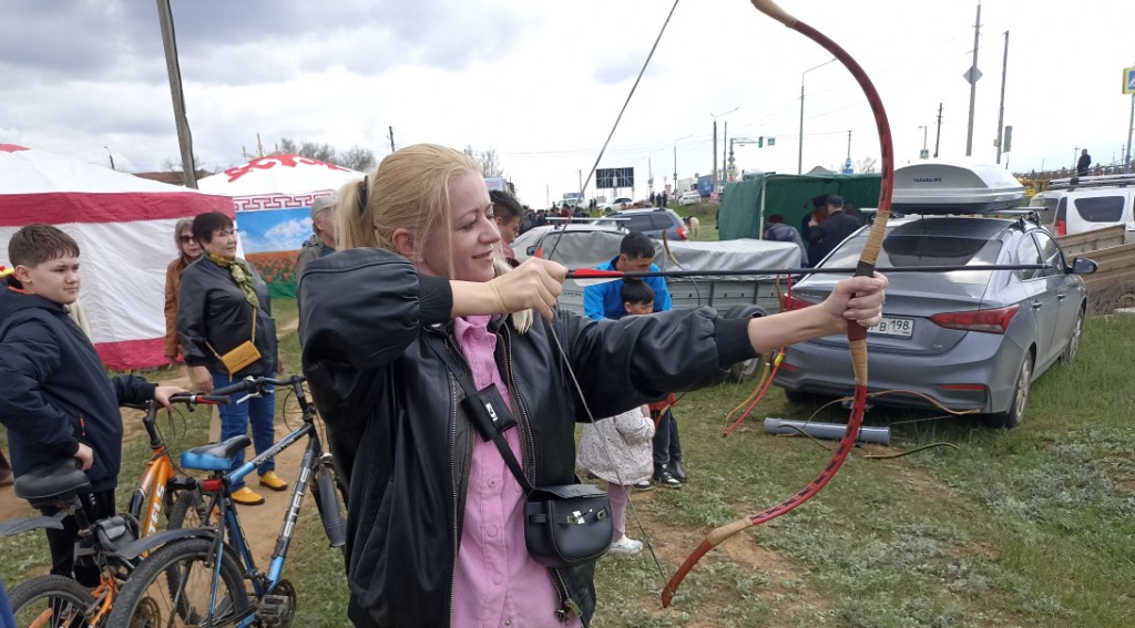 Интересной оказалась экспозиция, представляющая костюм кочевника и вооружение. Как выяснилось, молодые ребята, рассказывающие о традициях и обычаях кочевого народа, — участники многих реконструкций событий старины глкубокой. Недавно они вернулись с такого мероприятия на Ставрополье, а на фестивале тюльпанов организовали мастер-класс по стрельбе из лука.