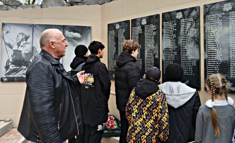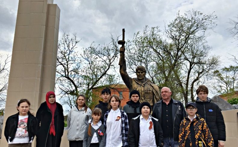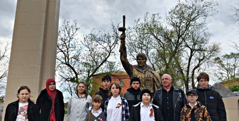 Ребята собрались у памятника, чтобы почтить память героев, отдавших жизни за Родину. Ведущий подробно рассказал об истории создания монумента и событиях, в честь которых он был воздвигнут.