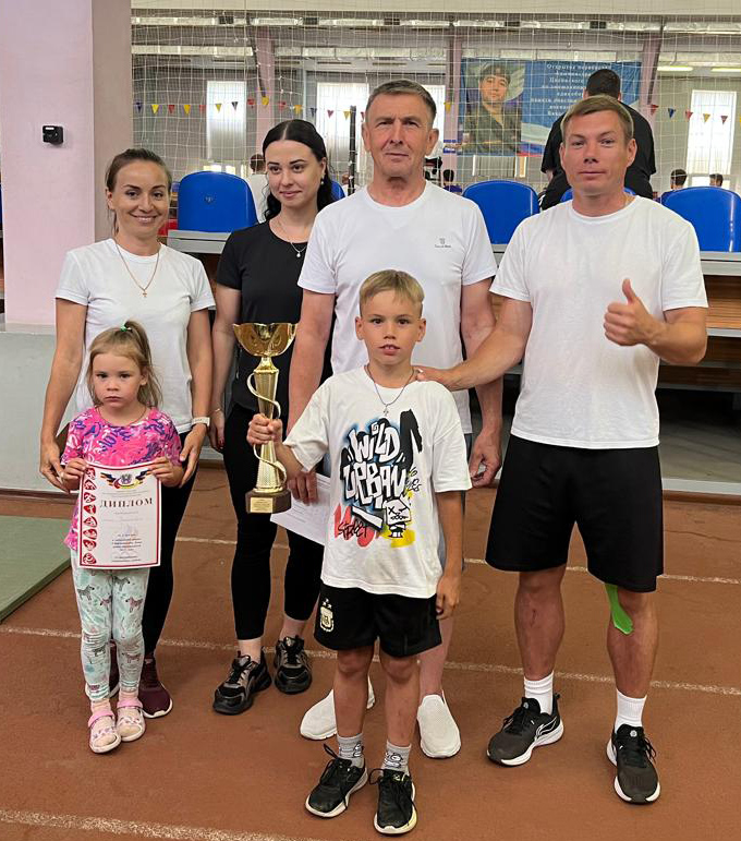 Фото со страницы ВК Антон Физрук и из архива / https://rassvetnews.ru/. Соревнования «Папа, мама, я — спортивная семья» в рамках зонального этапа «Спартакиады Дона». 2025 г. А. Кирнносов (крайний справа) с семьей.