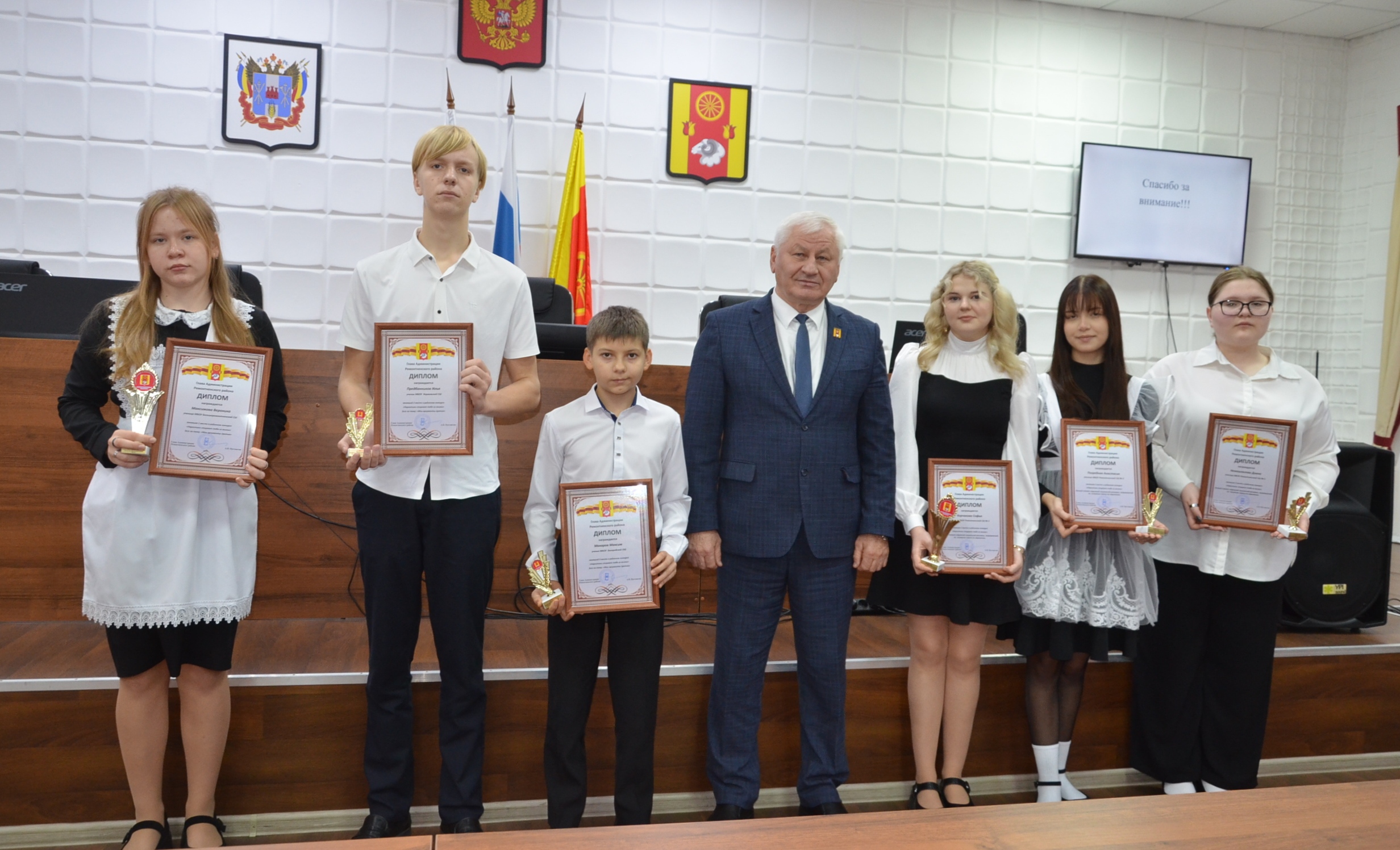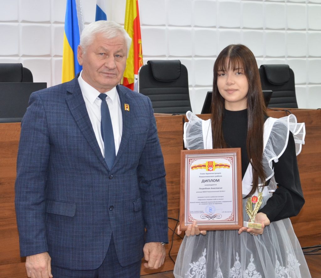 Сегодня, 24 ноября, в Администрации района состоялось чествование победителей конкурса. Глава Администрации Анатолий Пустоветов поздравил школьников с успехом и вручил Дипломы победителей.