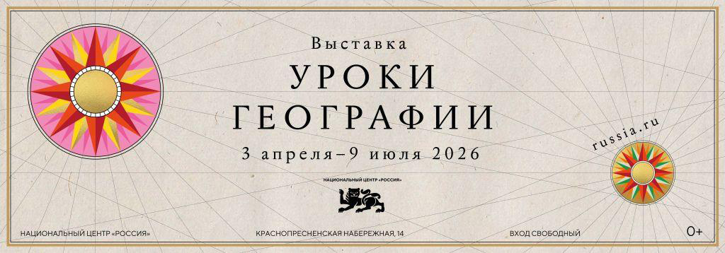 Выставка «Уроки географии» открыта для посетителей с 3 апреля по 5 июля 2026 года в выставочном зале Национального центра «Россия» (Москва, Краснопресненская наб., 14), а также в филиалах центра. Вход свободный.