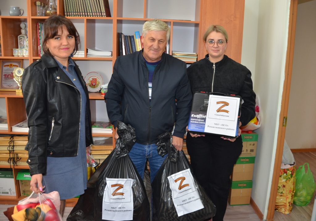 Как всегда большую активность проявили школьники. Ремонтненская гимназия №1 в течение двух дней поставляла собранные ребятами коробки со сладостями и другими полезными вещами. Машину с посылками в пункт сбора снарядила Валуевская школа. Скоординировав действия, педагоги, представляющие «Движение Первых», привезли коробки с логотипом движения, которые передали из Ремонтненского ЦДТ, Подгорненской, Денисовкой, Кормовской средних школ и гимназии №1. Также были переданы средства от кормовских родителей учащихся, на которые приобретены медикаменты. Оставшись в пункте сбора, педагоги в этот день помогли сотрудникам редакции разгрузить прибывающие машины, в том числе богородскую.