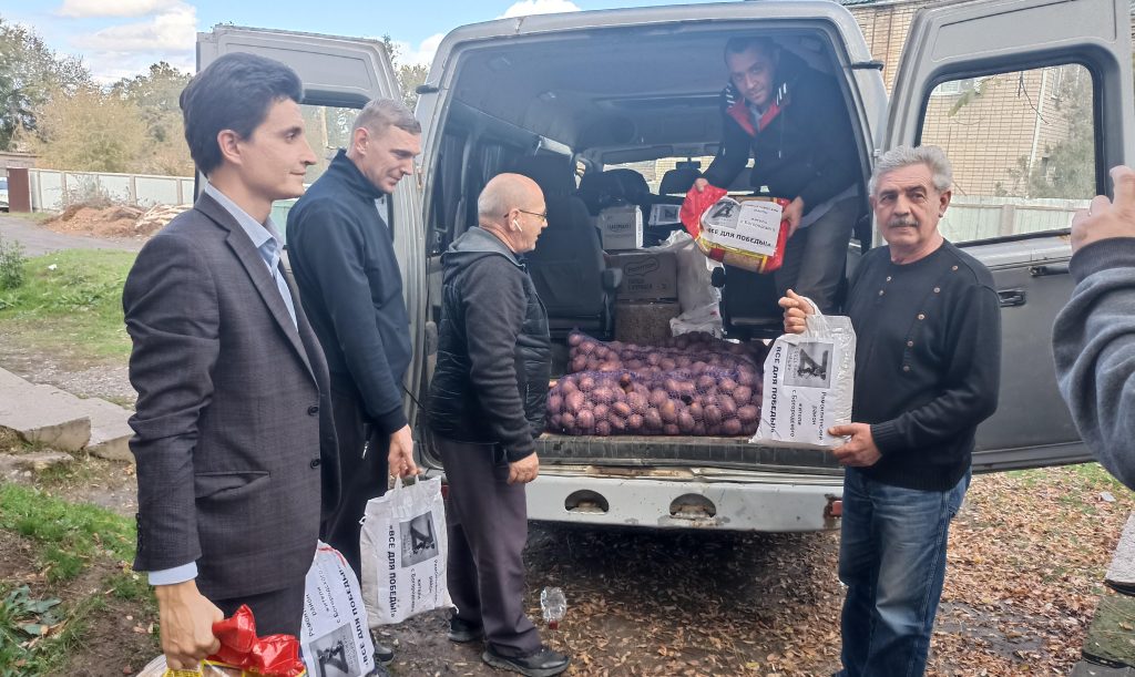 До отказа загруженный из Богородского пришел УАЗ-«буханка». Здесь действует добровольческая группа «Все для фронта». Как рассказала один из координаторов группы Алена Харченко, собирали всем селом. Люди приносили продукты и вещи хорошего качества из дому, кроме того, собрали деньги и в соседней Элисте закупили много всего нужного – газовые плитки, картофель, лук и т.д.