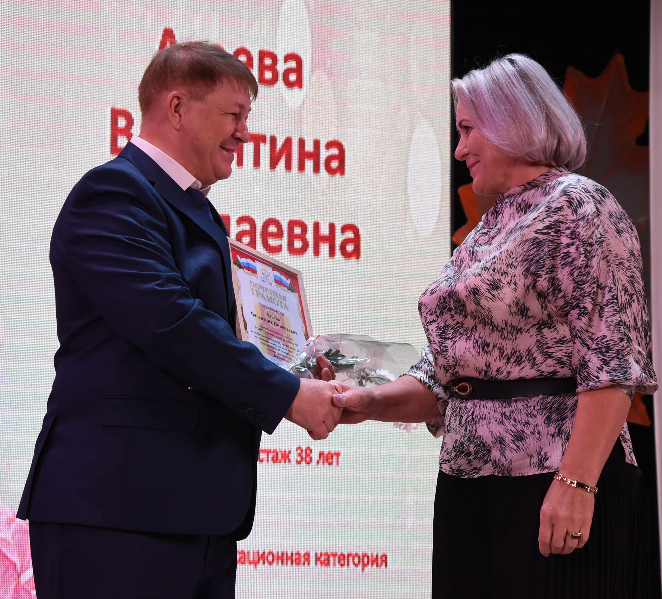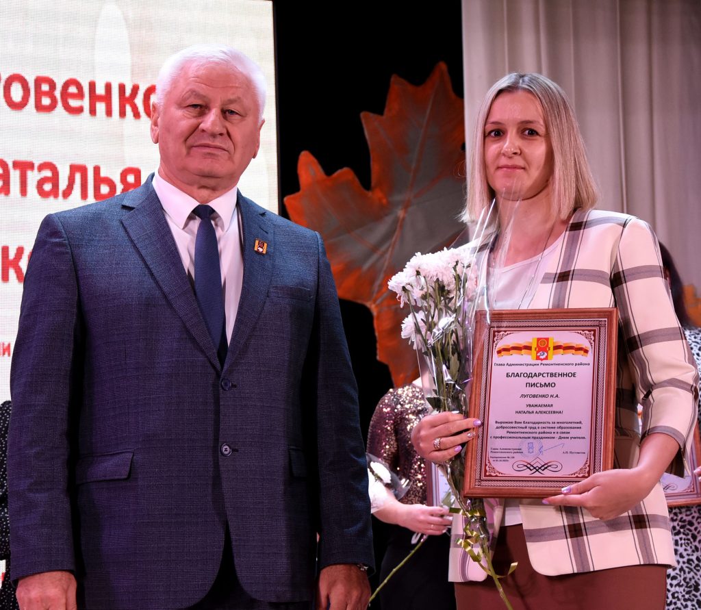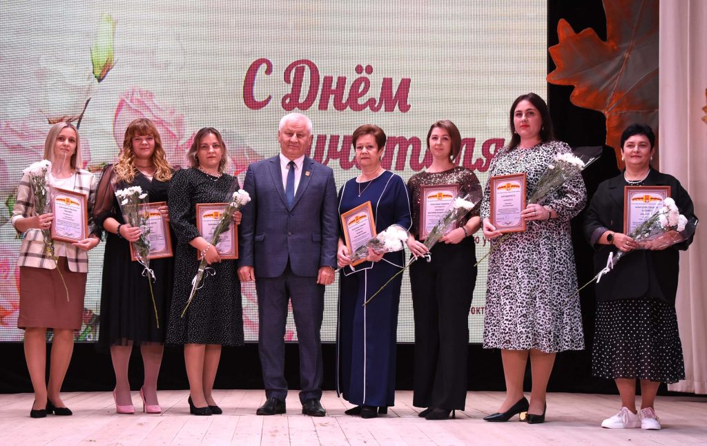 — Именно от учителя, от его способностей и профессионализма зависит будущее наших детей и завтрашний день нашего региона, нашей большой и великой страны. Наш район славится успехами ваших учеников во всех областях нашей деятельности: будь то спорт, культура, наука, здравоохранение, сельское хозяйство. В этом году наши аграрии впервые стали лидерами в области по урожайности, и в пятерке лучших по намолоту. По итогам управленческой деятельности наш район в рейтинге занимает 4 место. И в этом, без сомнеия, есть ваша заслуга, — отметил глава муниципалитета.