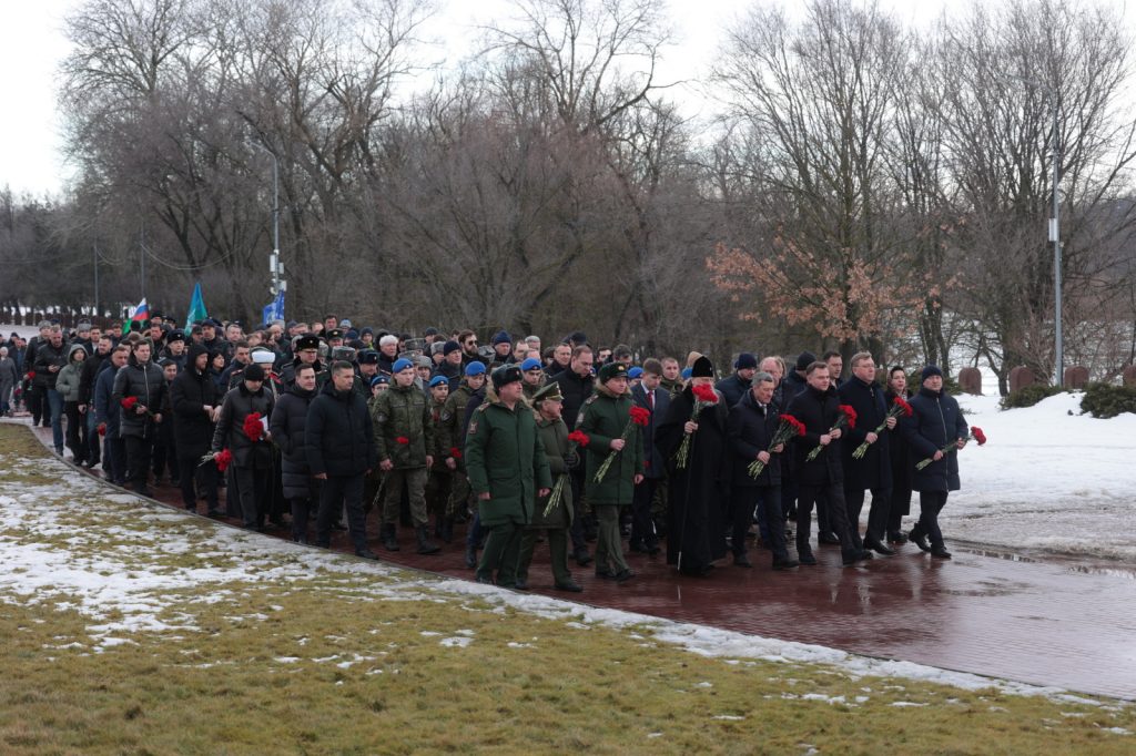 В торжественной церемонии возложения Гирлянды Славы и цветов в Кумженской роще, где в годы войны шли кровопролитные бои, приняли участие губернатор Ростовской области Юрий Слюсарь, представители правительства, Государственной Думы, Законодательного Собрания области, Донской митрополии, Южного военного округа, администрации Ростова-на-Дону, городского отделения совета ветеранов, Герои России, почетные граждане Ростова-на-Дону.