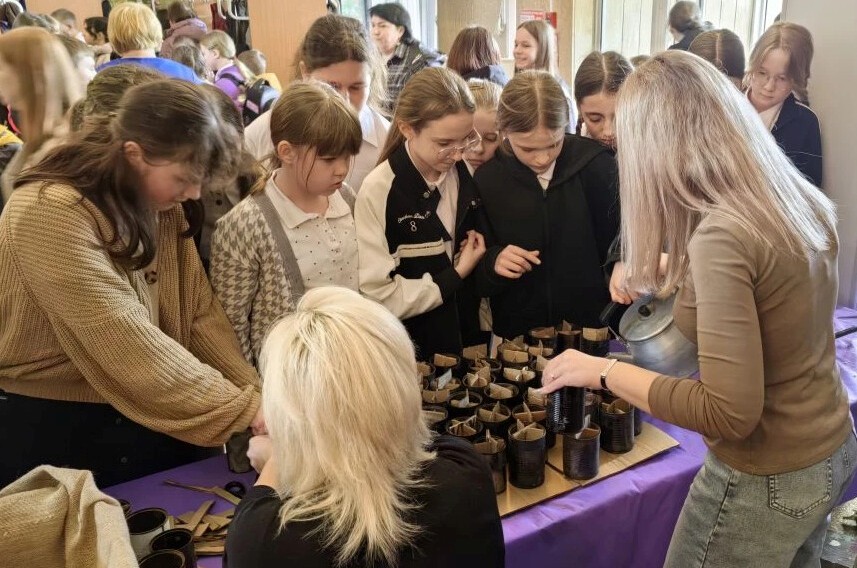 В фойе районного Дворца культуры состоялся мастер-класс «Блиндажная свеча». Участники мероприятия с вдохновением и искренней заботой в глазах осваивали секреты создания этих незаменимых в полевых условиях источников света и тепла.