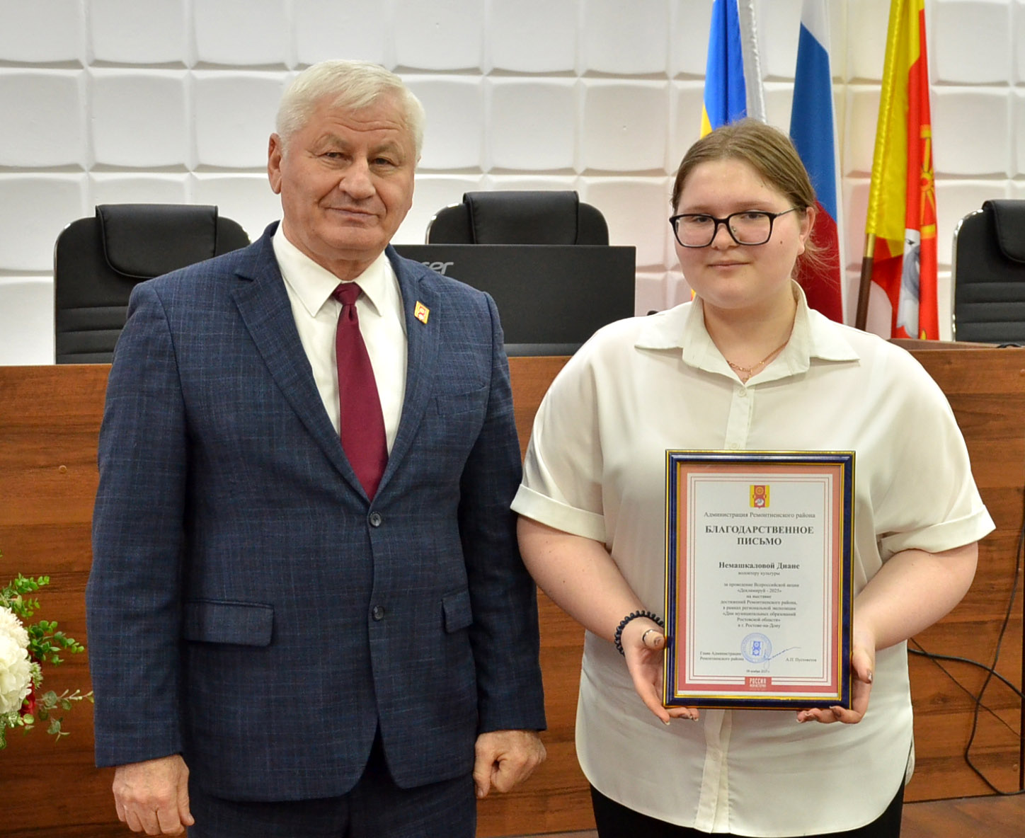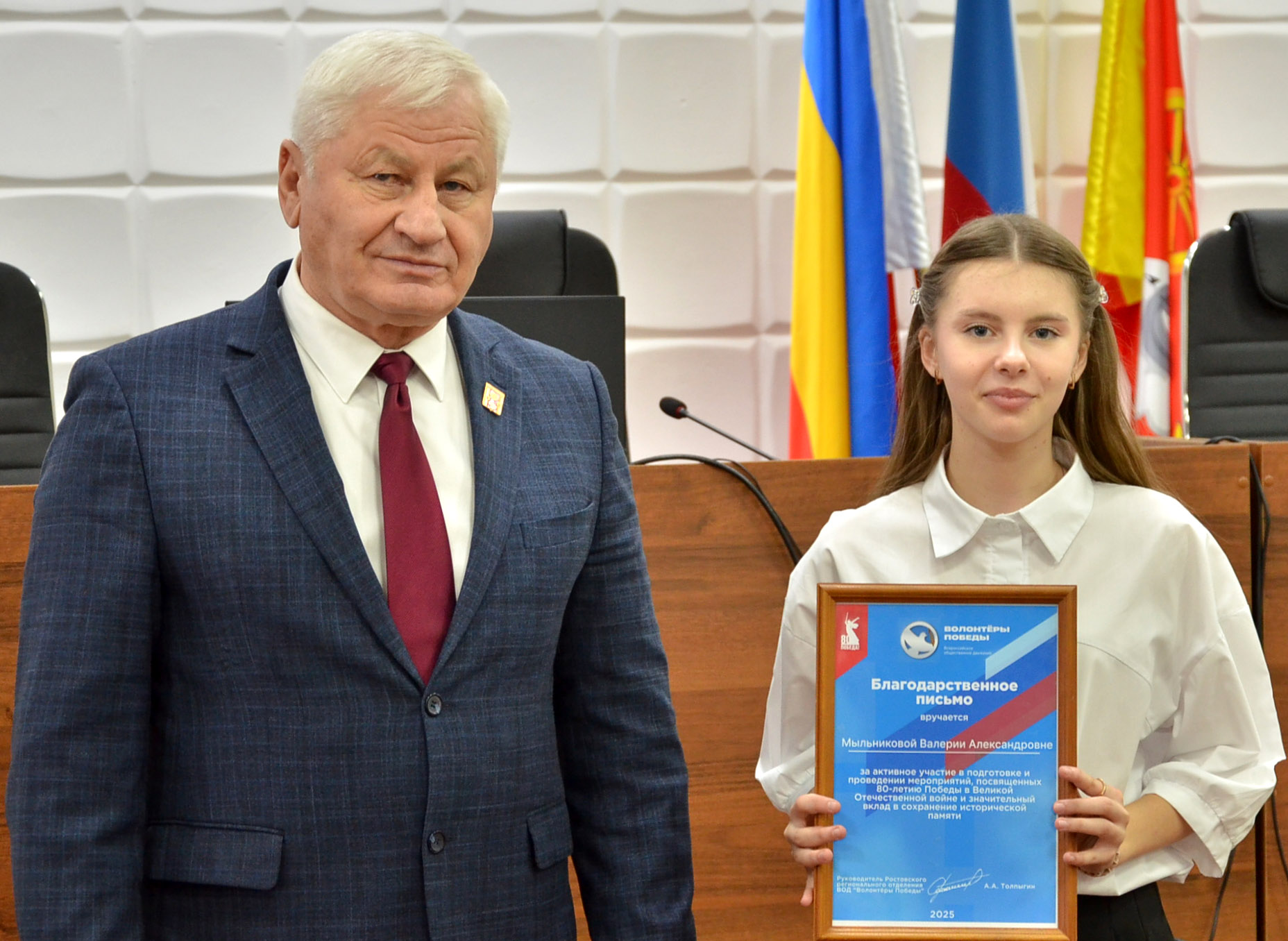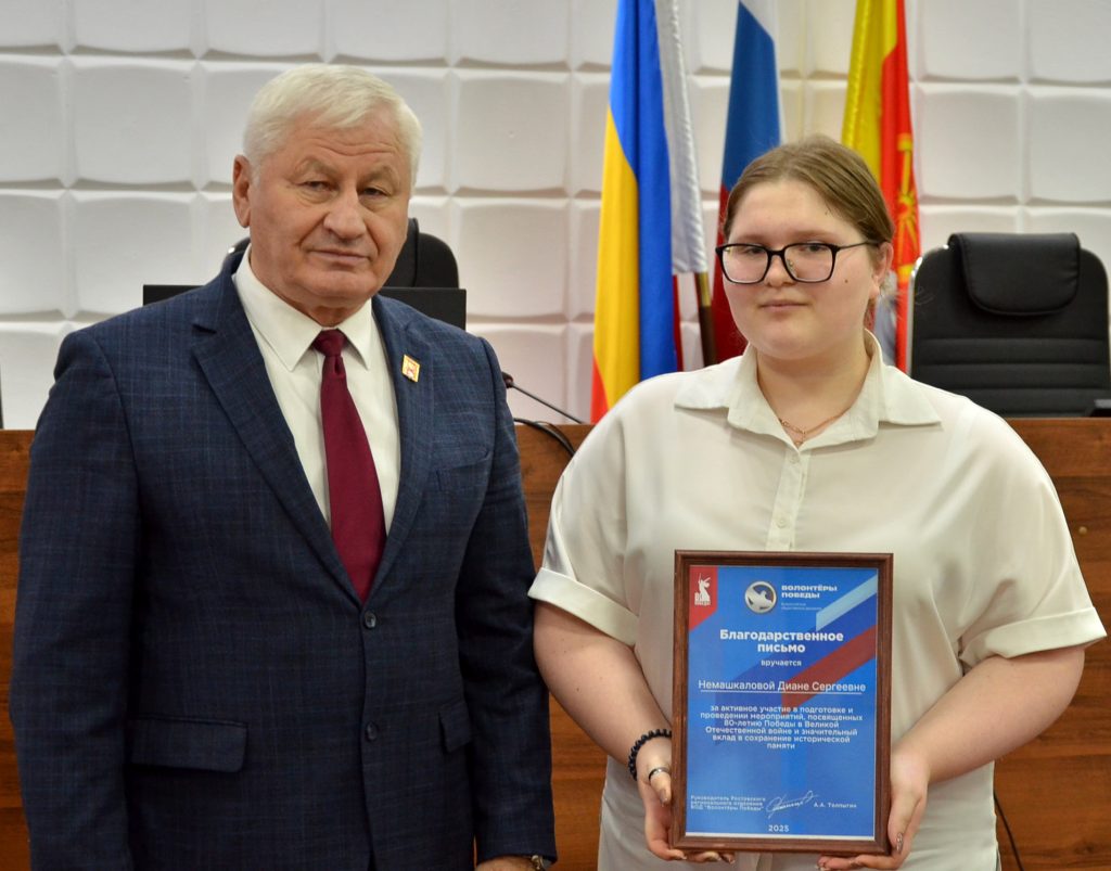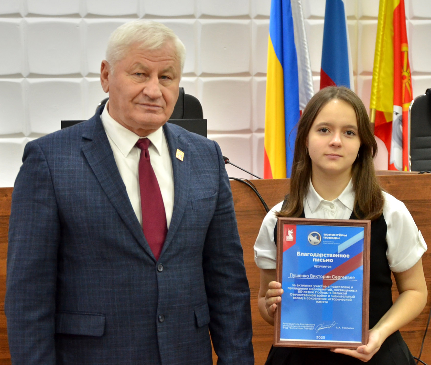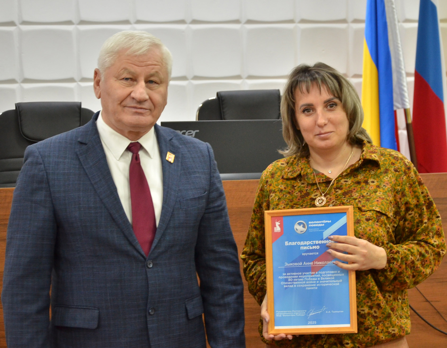За активное участие в подготовке и проведении мероприятий, посвященных 80-летию Победы в Великой Отечественной войне и значительный вклад в сохранение исторической памяти, Благодарственным письмом руководителя Ростовского регионального отделения Всероссийского общественного движения «Волонтеры Победы» награждены: