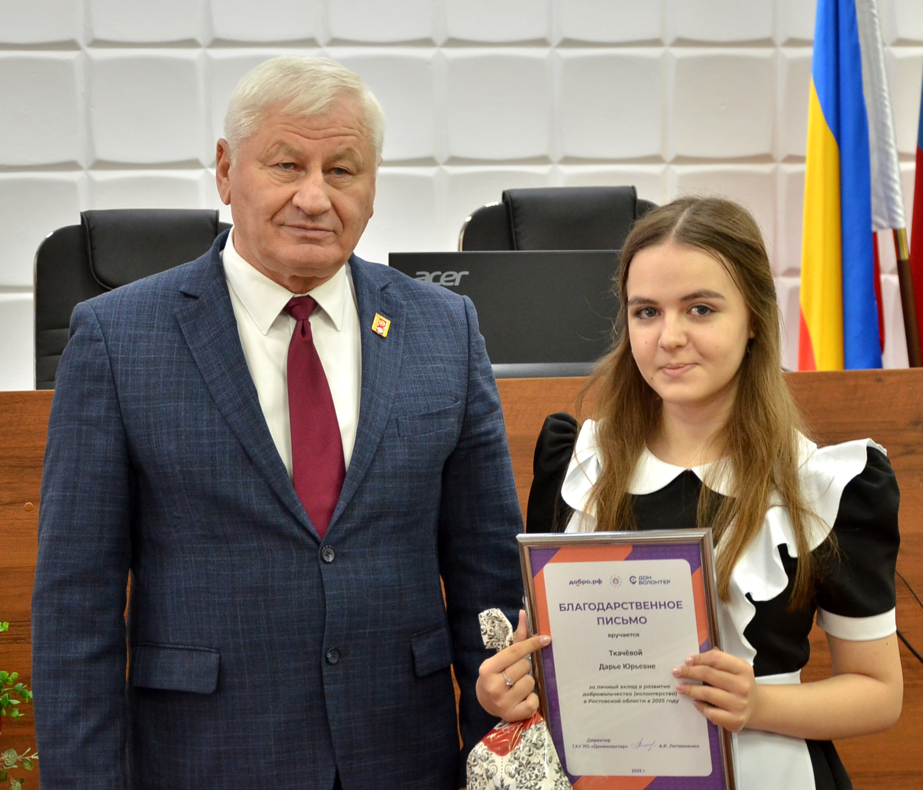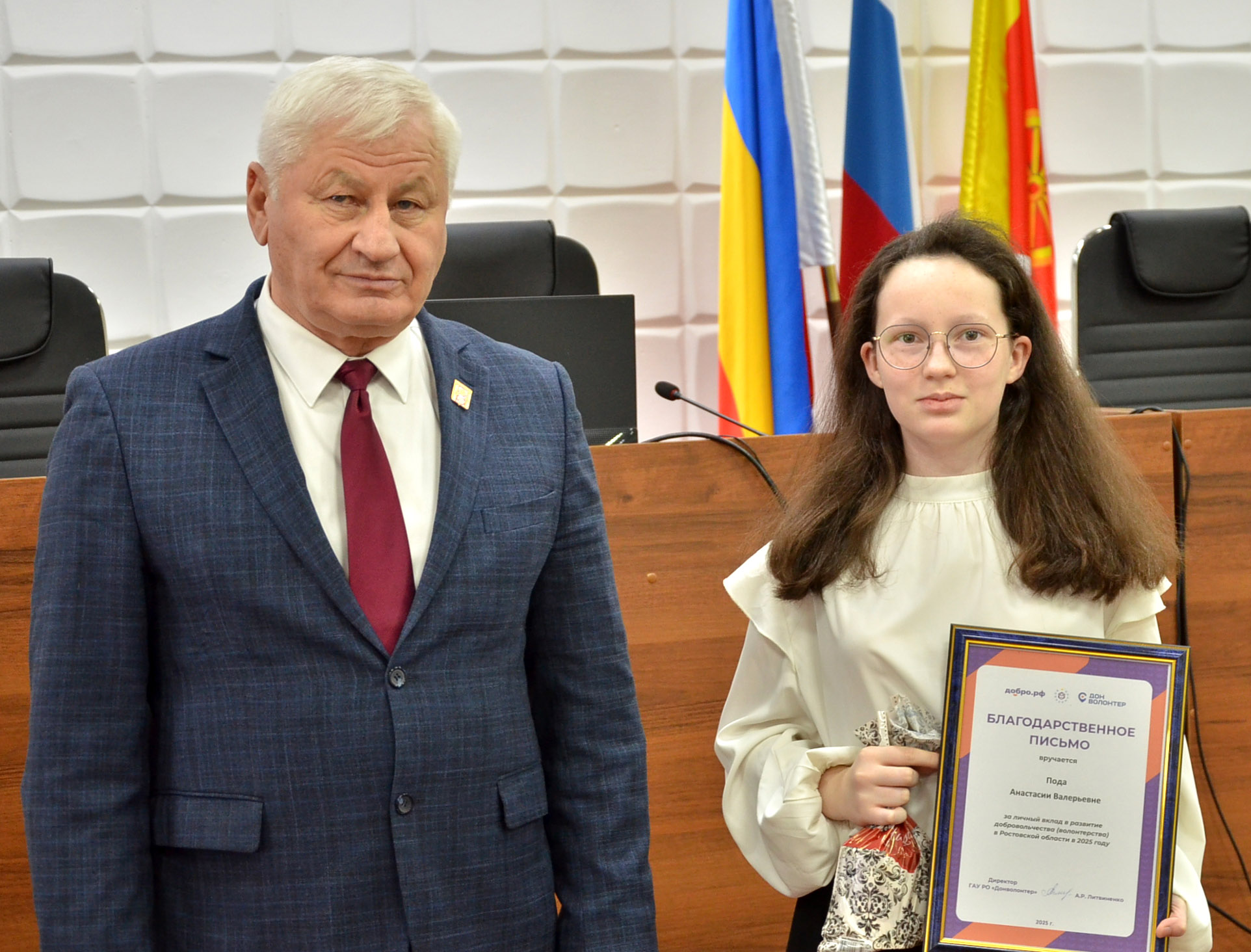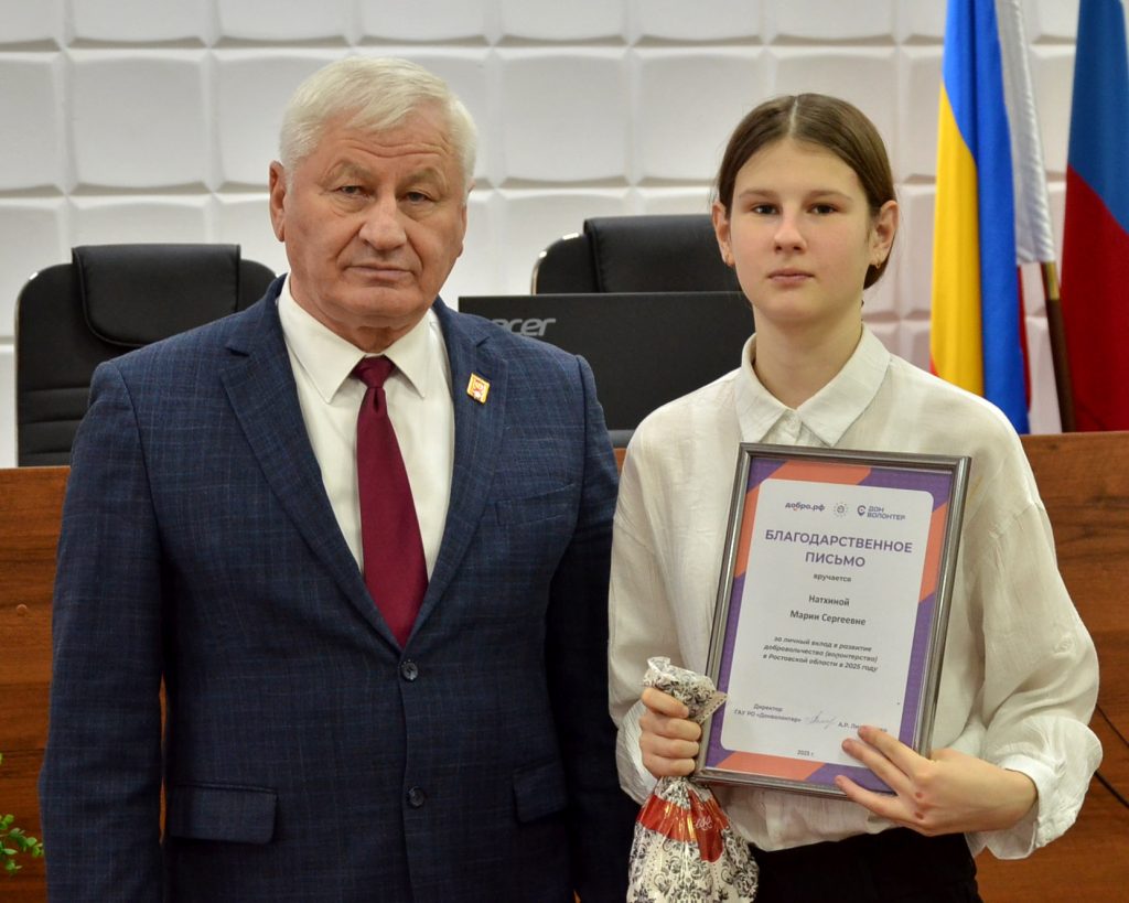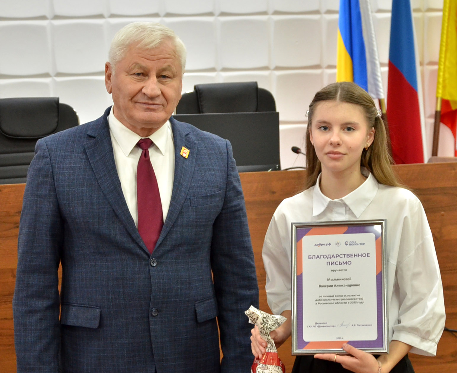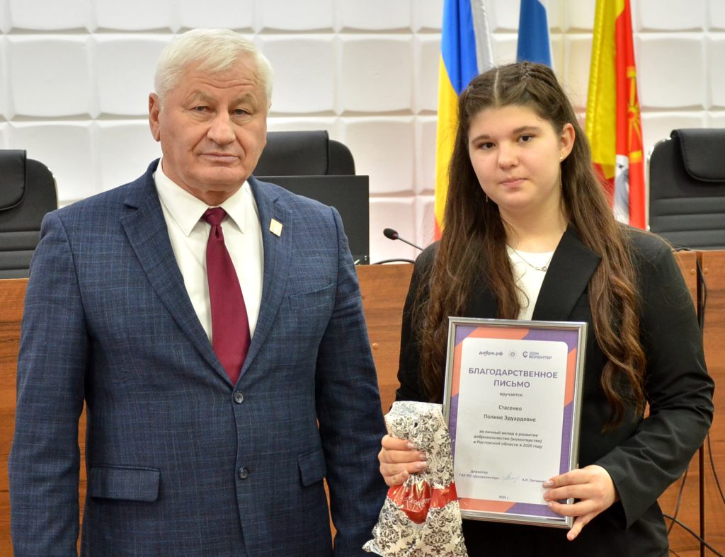 Благодарственным письмом директора Донского волонтерского центра за личный вклад в развитие добровольчества (волонтёрства) в Ростовской области в 2025 году награждены: