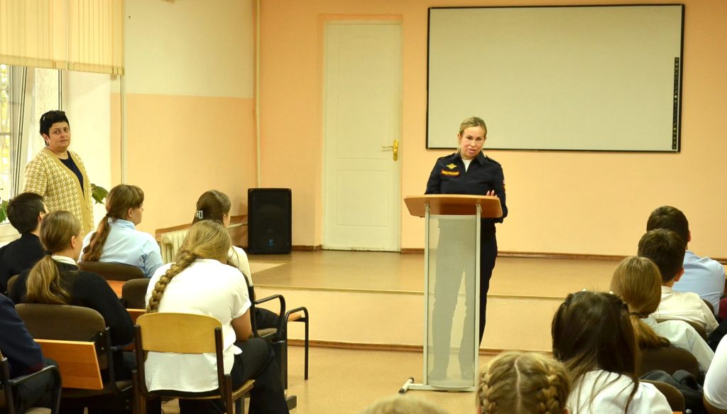 Так, 26 сентября лекторская группа в составе прокурора Ремонтненского района Полищука Евгения Евгеньевича, старшего инспектора ПДН МО МВД России «Ремонтненский» Евстафьевой Снежаны Николаевны, ведущего специалиста органов опеки и попечительства Ремонтненского отдела образования Богуновой Екатерины Сергеевны, секретаря КДН и ЗП при Администрации Ремонтненского района Баранниковой Марины Александровны и инспектора по пропаганде безопасности дорожного движения ОГИБДД МО МВД России «Ремонтненский» Баклагановой Ольги Григорьевны посетила Ремонтненскую гимназию №1.