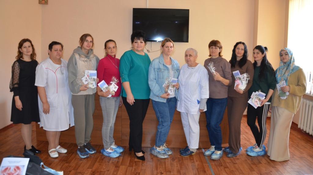 Анжела Александровна вручила будущим мамам памятные подарки от сотрудников Ремонтненского Центра социального обслуживания. Галина Ханмирзаева пожелала женщинам легкой беременности и здоровья, преподнеся им в дар крохотные носочки для новорожденных.