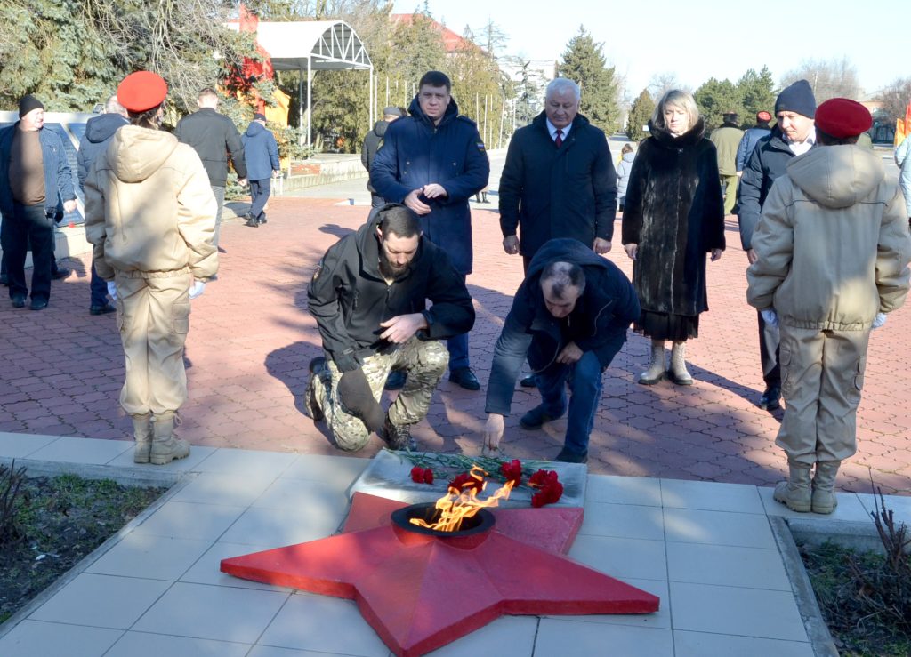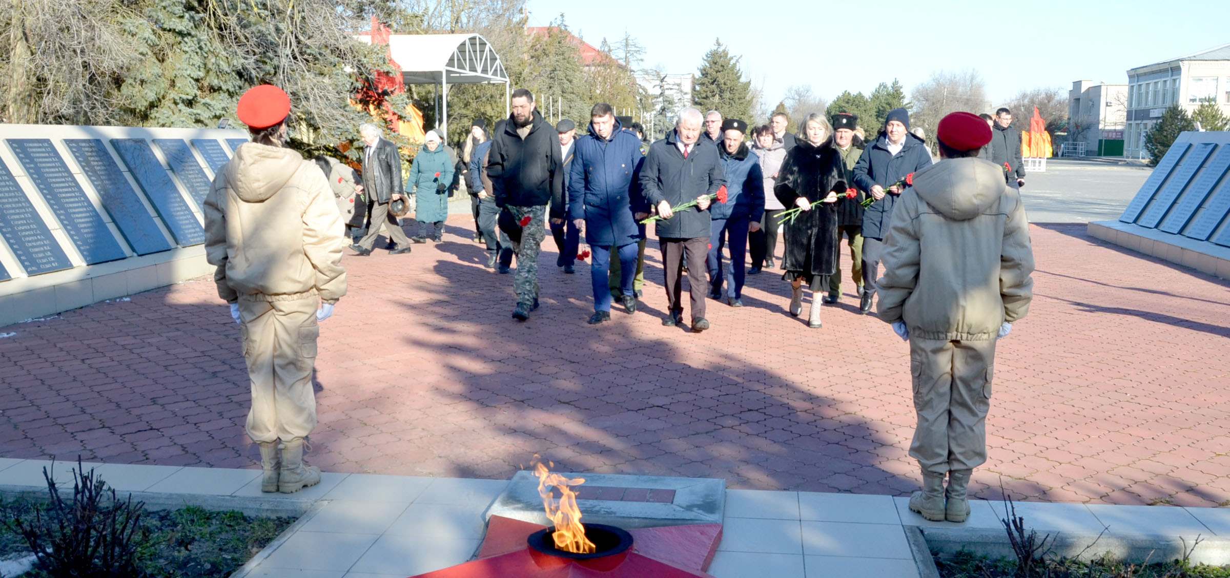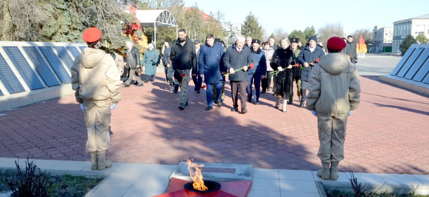 Сегодня, 20 февраля, в Ремонтном состоялась торжественная церемония возложения цветов к мемориальному комплексу павшим защитникам Отечества.