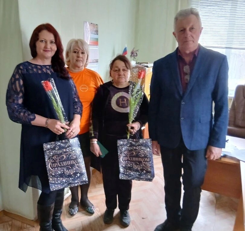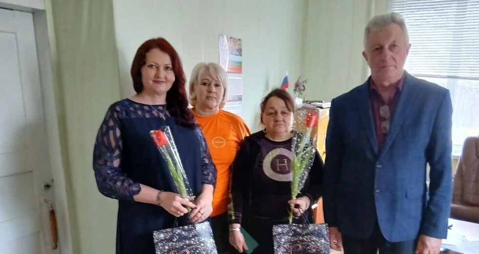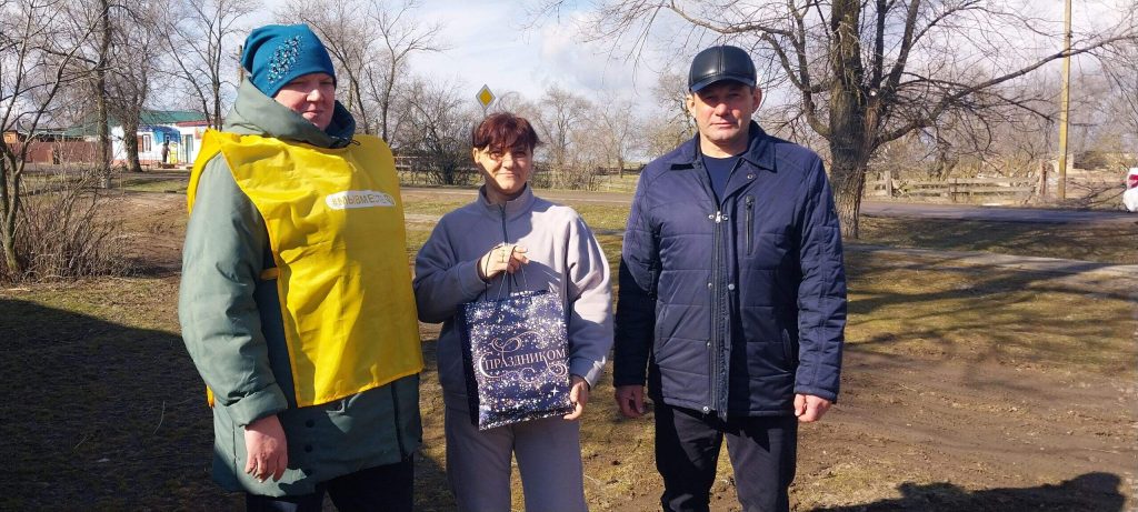 Главы администраций Валуевского сельского поселения Владимир Гетманский, Краснопартизанского сельского поселения Борис Макаренко вместе с волонтерами встретились с женщинами, чтобы выразить им теплые слова поддержки и вручить весенние цветы.