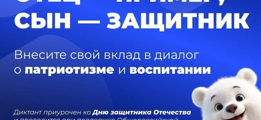 В рамках федерального партийного проекта «Крепкая семья» при поддержке «Совета Матерей» все желающие могут принять участие в диктанте «Отец – пример, сын – защитник».